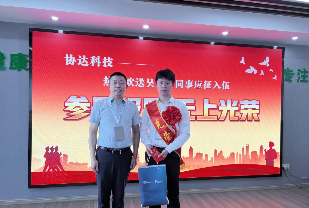 最后,陳總表達了對他殷切的希望,期望他不負囑托、努力拼搏,在軍營里譜寫出無悔壯麗的青春!并承諾協達的大門永遠為你們敞開,公司將保留入伍員工的崗位,退伍之后可隨時回崗,協達期待你們早日立功的喜訊!